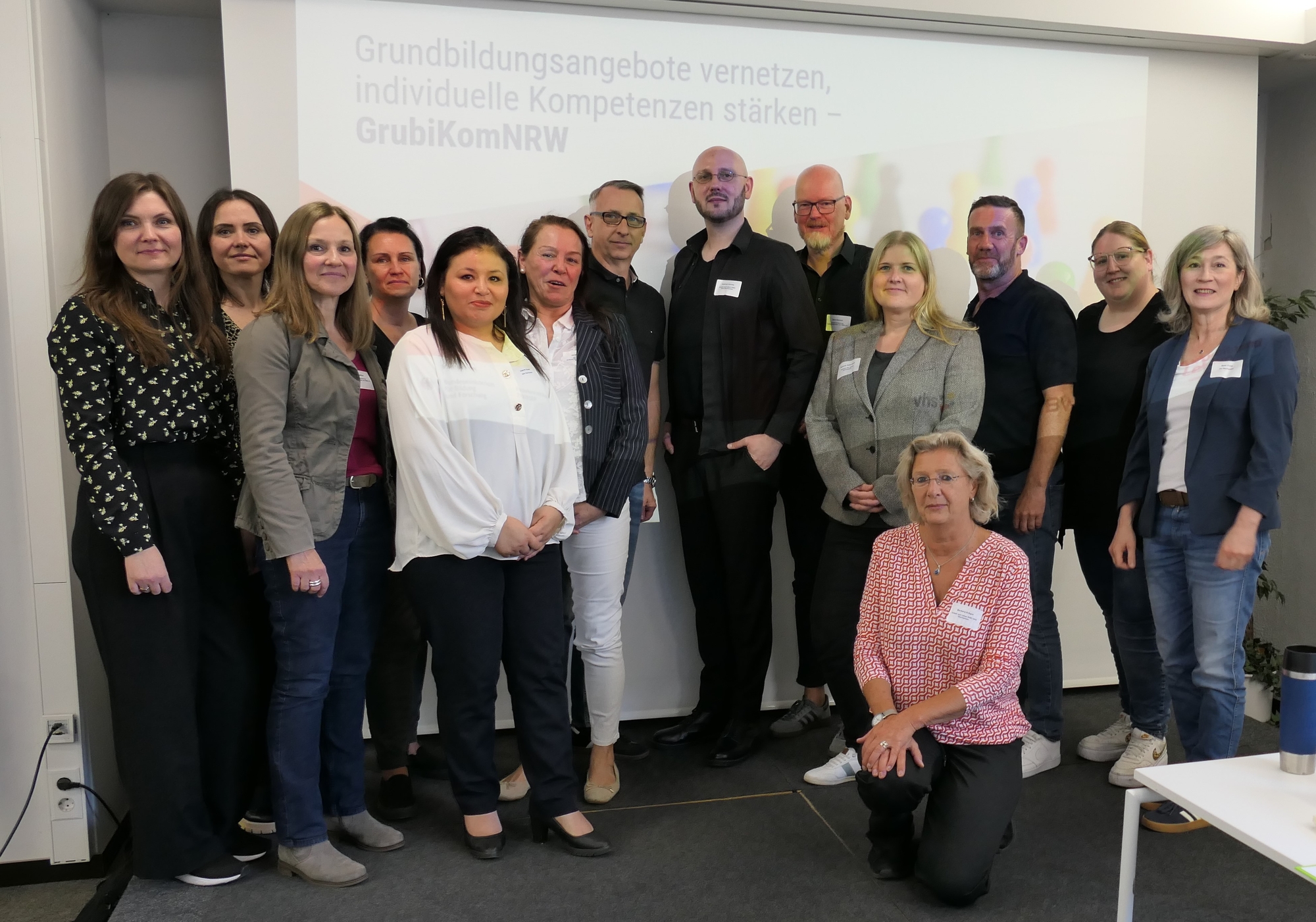 Im Januar 2025 traf sich erstmals das Netzwerk des Projekts GrubiKomNRW in den Räumlichkeiten des Zentrums für Ausbildung und Qualifizierung e.V. (ZAQ) in Oberhausen, um sich über die Projektarchitektur, die Ziele und das Vorgehen zu verständigen. Den Projektmitarbeitenden und den Vertreter*innen der lokalen Netzwerkpartner bot das Treffen die Möglichkeit zum Kennenlernen und zum ersten Austausch. Neben den Projektmitarbeiter*innen vom Landesverband der Volkshochschulen von NRW e.V., Arbeit und Leben NRW und Arbeit und Leben Oberhausen sowie der Volkshochschule Oberhausen nahmen Vertreter*innen u.a. des Jobcenters Oberhausen, der Agentur für Arbeit Oberhausen, des Zentrums für Ausbildung und Qualifizierung e.V., der OWT und der Caritas Oberhausen sowie Vertreter*innen der Ruhrwerkstatt, der Katholischen Familien- und Erwachsenenbildung, KinderKosmos und der Einrichtung Die Kurbel/ZIB an dem Treffen teil.