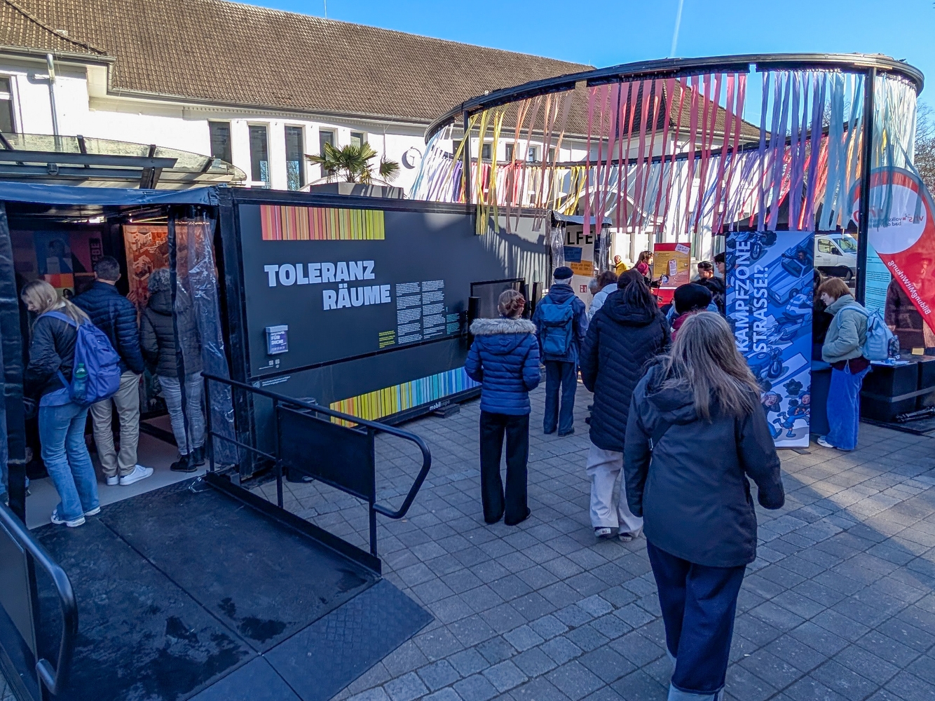 Bis zum 29. März wird der Ausstellungscontainer samt interaktivem Außenbereich auf dem Bahnhofsvorplatz stehen (Nordbahnhof, Herforder Straße) – also mitten im öffentlichen Raum, kostenlos und für alle zugänglich. Die Ausstellung wird rund um die Uhr geöffnet sein. Drinnen geht es um den Begriff der Toleranz und besondere Beispiele aus der Geschichte. Draußen wird mit Beispielen aus dem Alltag gezeigt, wo Toleranz wichtig ist und wie sich die Menschen für mehr Respekt im gegenseitigen Umgang einsetzen können.