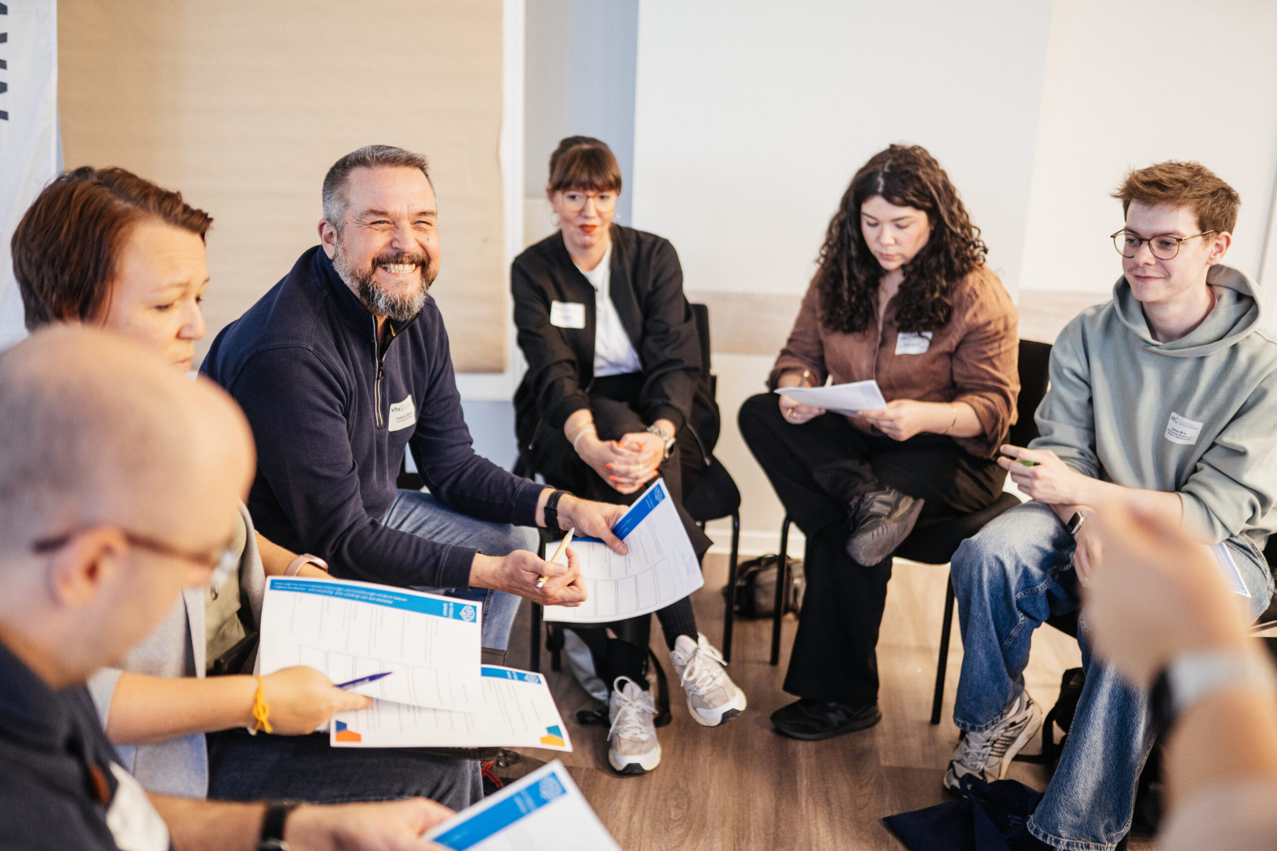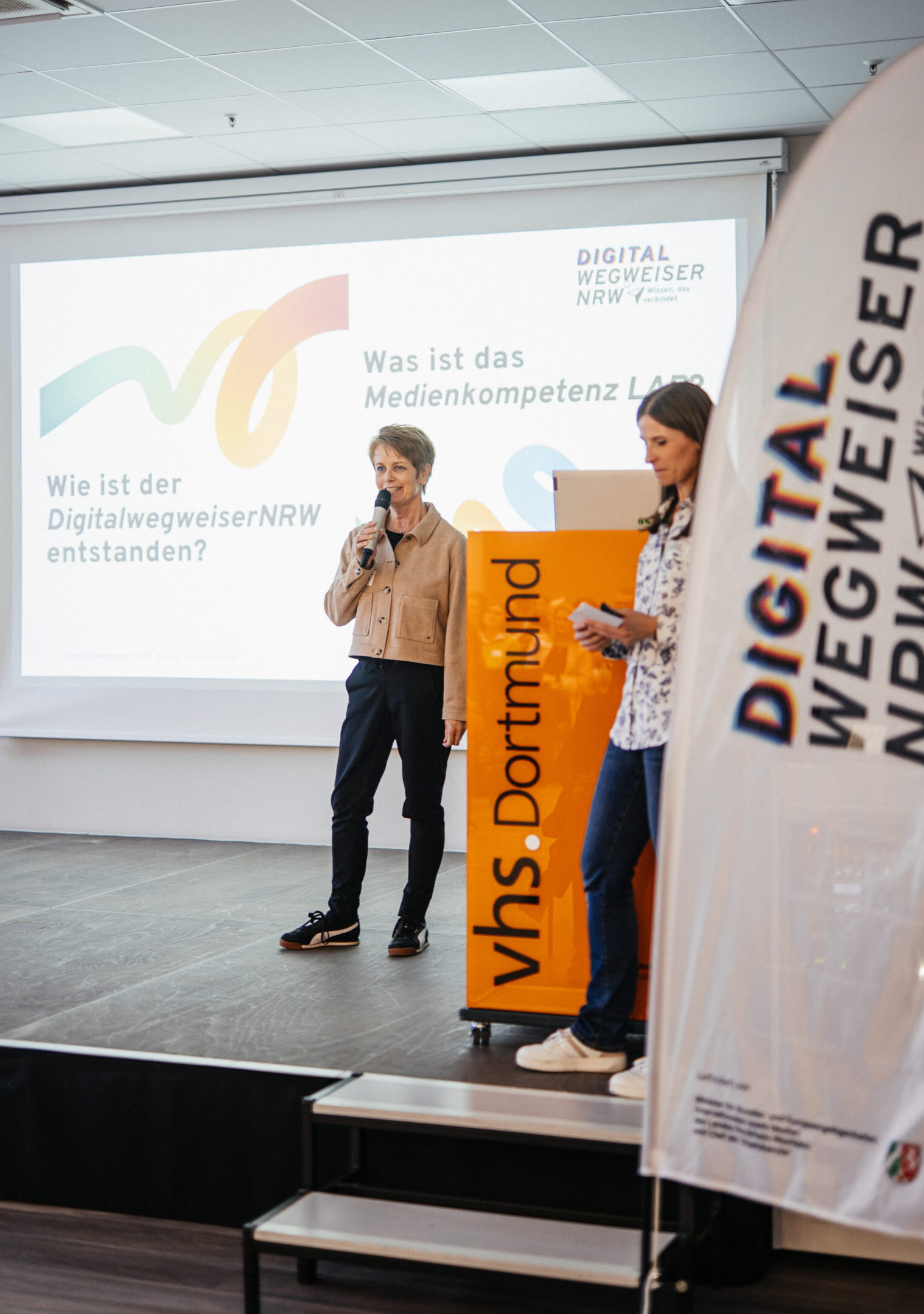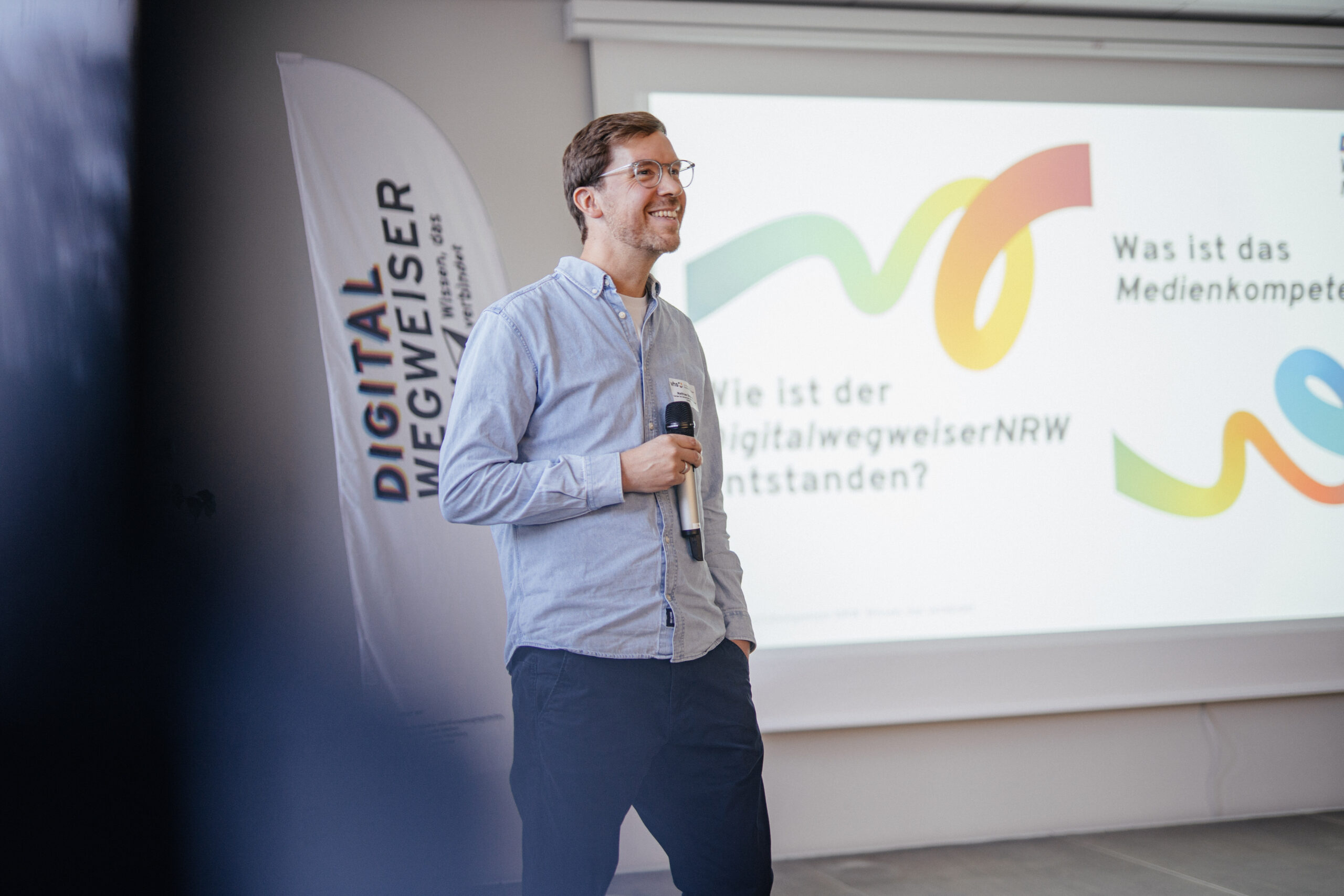 Im Rahmen des Projektes luden die Kooperationspartner* innen am 25. September 2025 zu einem ersten gemeinsamen Barcamp in der vhs Dortmund ein. Unter dem Motto „Wissen, das verbindet“ brachte der „Digitalwegweiser NRW“ erstmalig Akteur*innen aus NRW zusammen, die Erwachsene unabhängig von Alter, Bildung oder Technikverständnis dabei unterstützen, kompetent mit digitalen Medien umzugehen.