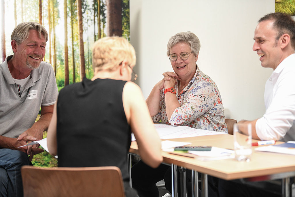 Im Gespräch mit Landtagsabgeordneten ging es um die Frage der Fachkräftegewinnung und -sicherung für die Weiterbildung. An der Diskussion beteiligten sich Carolin Kirsch (weiterbildungspolitische Sprecherin der SPD-Landtagsfraktion und Mitglied im Präsidium des vhs-Landesverbandes), Jens Kamith (familienpolitischer Sprecher der CDU-Landtagsfraktion und Mitglied im Wissenschaftsausschuss) sowie Lena Zingsheim-Zobel (bildungspolitische Sprecherin der Landtagsfraktion von Bündnis 90/Die Grünen und Mitglied im Präsidium des vhs-Landesverbandes).